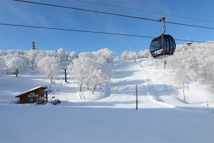 Ride the slick new Nagasaka gondola for beautiful views of the frozen trees and a true winter feeling at 1,500m. You can eat at the huge restaurant/cafe.
