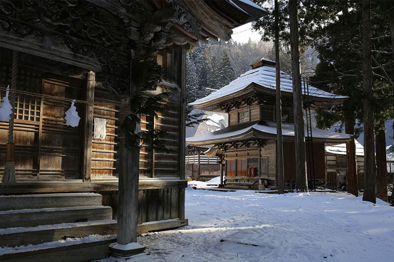 Climbing the steep stone stairs leading to the temple grounds is a true highlight in Nozawa Onsen. Surrounded by ancient Cedar trees and shrines covered in snow, this area is a must-see. Just around the corner, the equally impressive Ogama hot spring (93°C) should not be missed. You may be lucky and see locals cooking vegetables here. Continue past Ogama down Nozawa Onsens most beautiful cobbled street.